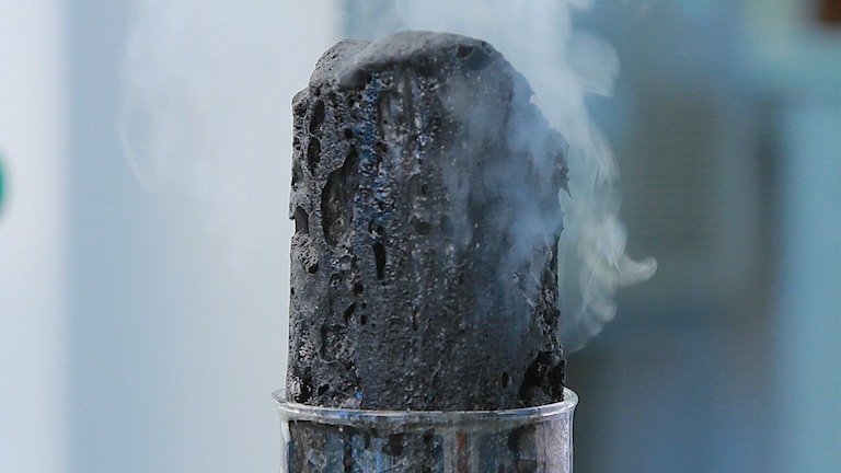 У цьому досліді сахароза реагує з сульфатною кислотою.
