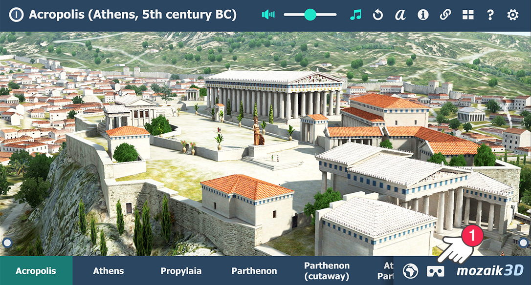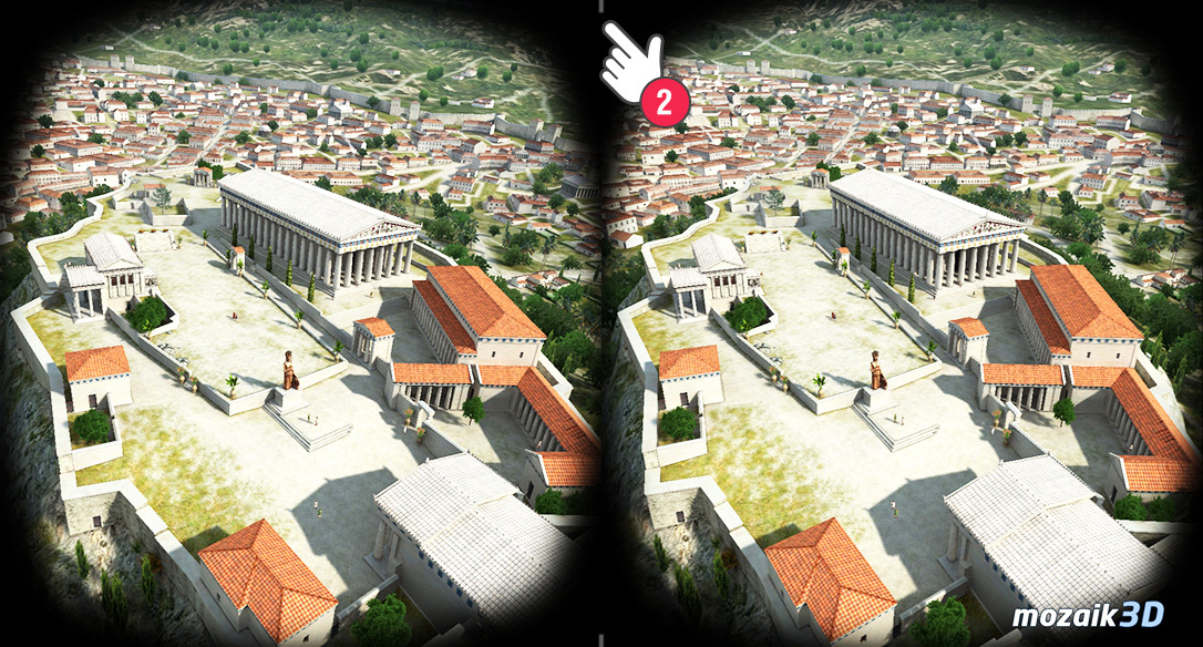 Ви можете здійснити віртуальну прогулянку у більшості 3D-сцен за допомогою гарнітури VR. Для цього вам потрібна гарнітура VR, в яку ви можете розмістити свій смартфон, і додаток mozaik3D, який ви можете завантажити безплатно.
