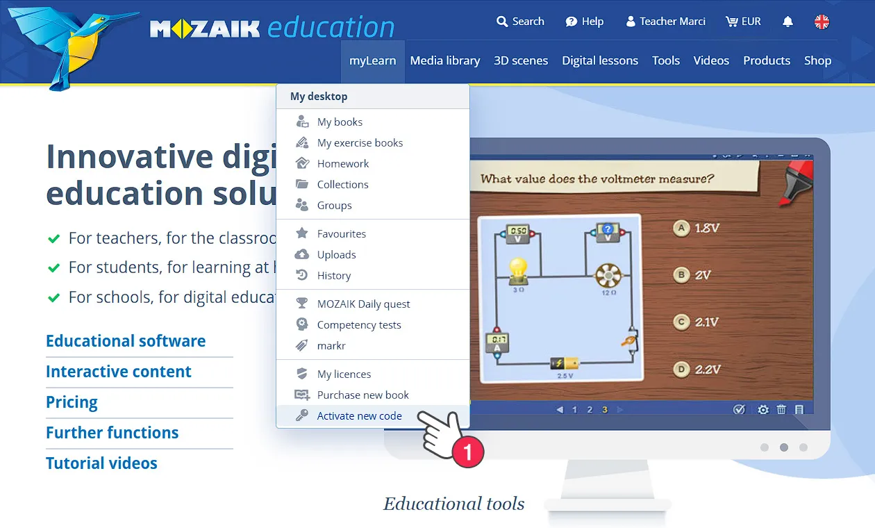 - Як я можу перейти з активації доступу mozaBook CLASSROOM на Mozaik TEACHER?