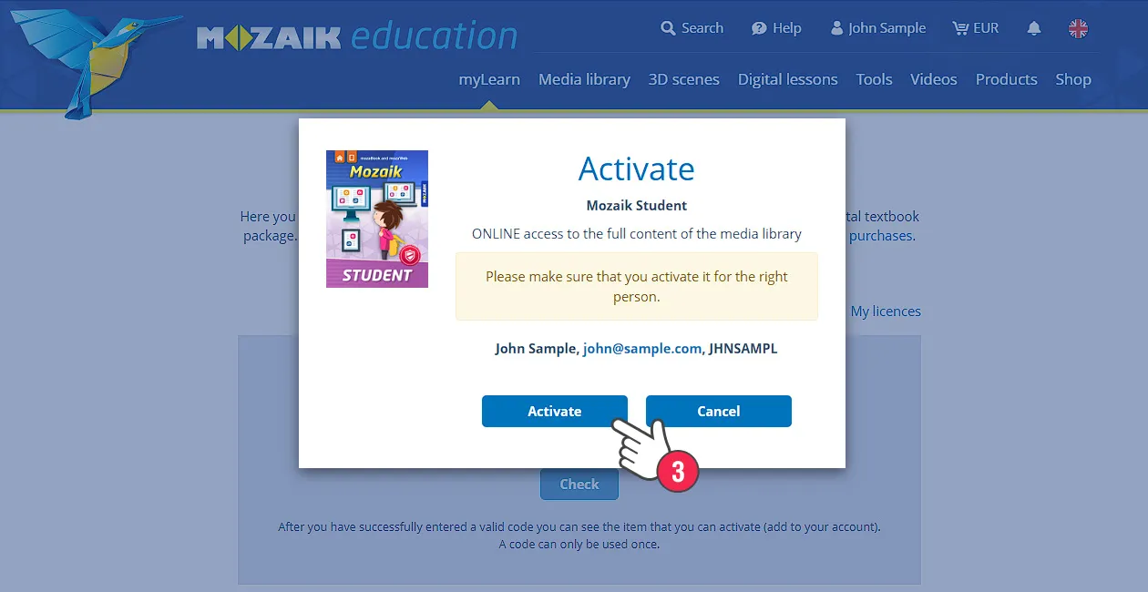 Якщо у вас є дійсний активаційний код Mozaik Teacher або Mozaik Student, вам потрібно активувати його, щоб отримати доступ до всіх функцій, які пропонують mozaBook і mozaWeb.
