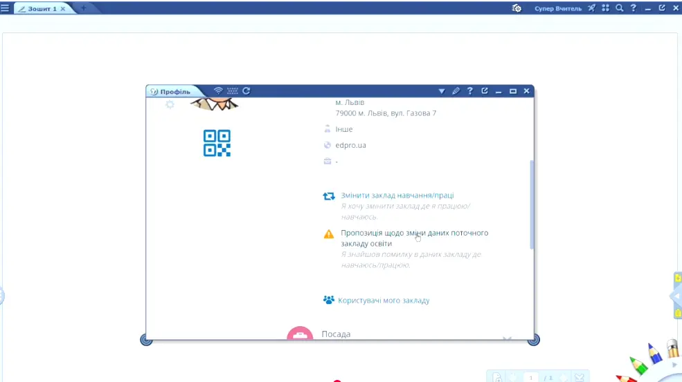 Усі зареєстровані користувачі мають можливість самостійно змінити інформацію про свій освітній заклад.